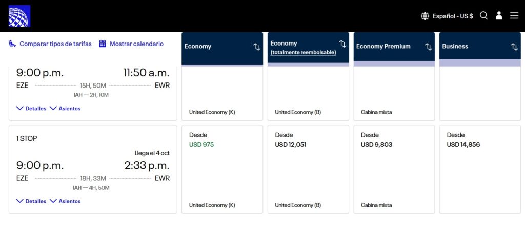 Uno tendría que elegir en cada tramo la opción de viajar en Economy por un precio de 975 dólares. Ambas incluyen equipaje de mano y despacho de dos maletas. Lo cual termina siendo un éxito rotundo.